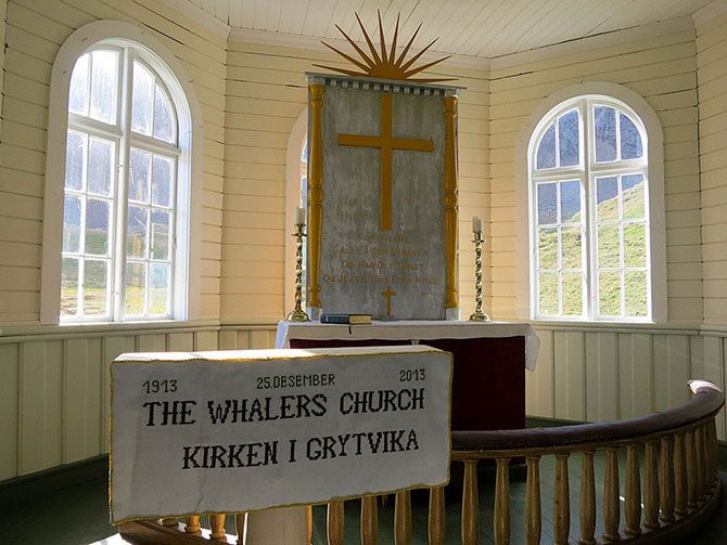 Церковь построили сами моряки, и это единственное сооружение в поселке, которое используется по своему первоначальному назначению. Сама китобойная станция была заброшена в 1966 году.