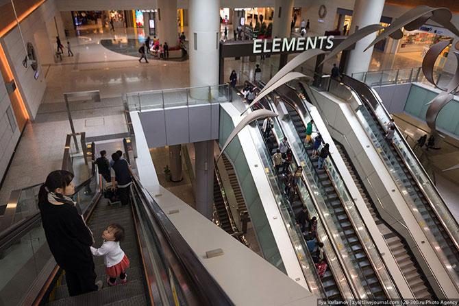 Торговые центры плавно перетекают в гостиницы, улицы, рестораны, соединяются с другими торговыми центрами и офисами. Иногда непонятно, где заканчивается один магазин и начинается другой. Где-то между торговыми рядами спрятались входы в метро и автобусные остановки. Сегодня сфера услуг даёт более 90% валового внутреннего продукта Гонконга.