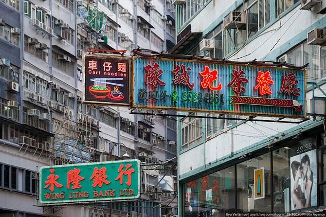 Повсюду вывески, за которыми не то, что домов, неба не видно.