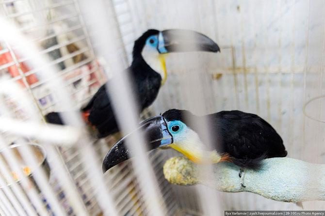 В зоомагазине продают птиц необычайной красоты.