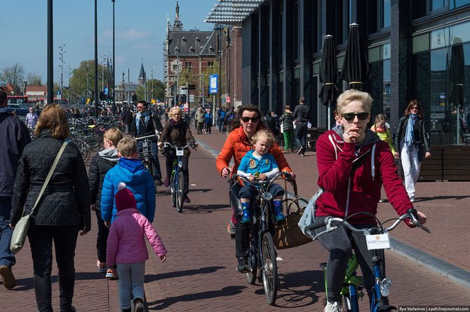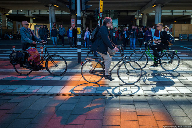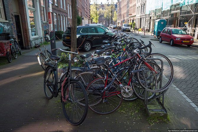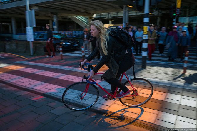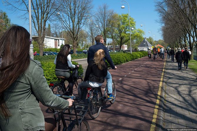 Велосипедисты в конец обнаглели и оттяпали себе все улицы. По Амстердаму теперь проложены целые велодороги.