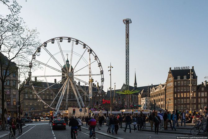 На центральный площади поставили аттракционы! Они бы еще сюда чемодан Луи Виттон поставили рекламный. Святое место, а устроили цирк какой-то. А как же историческая панорама? На месте ЮНЕСКО я бы после такого вычеркнул Амстердам из всех охранных списков.