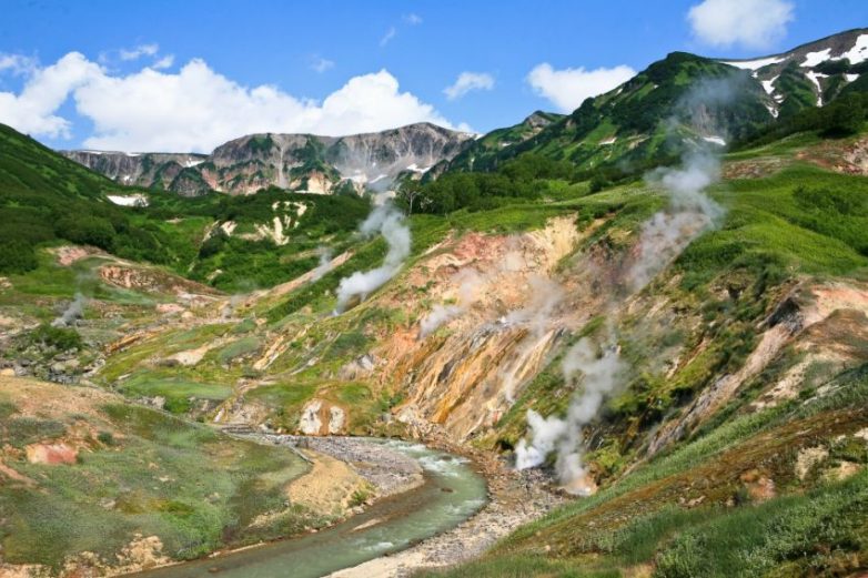 Единственное гейзерное поле в России и Евразии, одно из самых крупных подобных мест в мире. На его поверхности расположено около 20 крупных гейзеров и много горячих источников, выбрасывающих воду или пар.