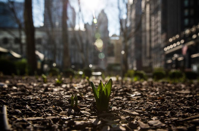Вылезающий на волю цветок в Брайант-парке в Нью-Йорке. (Фото Andrew Burton | Getty Images):
