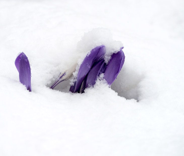 Крокусы вылезают из-под снега в Хохфильцене, Австрия, 23 марта 2014. Крокус – латинское название Шафра́на.