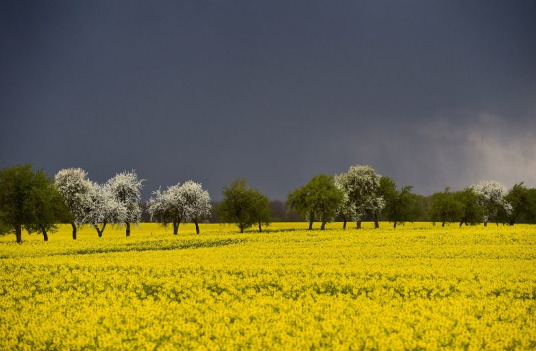 Тучи над рапсовым полем в Германии, 14 апреля 2014.
