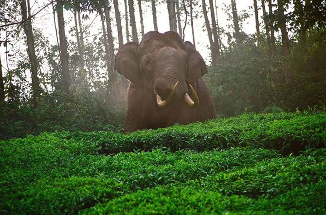 Дикий слон забрел на чайную плантацию в Муннаре.