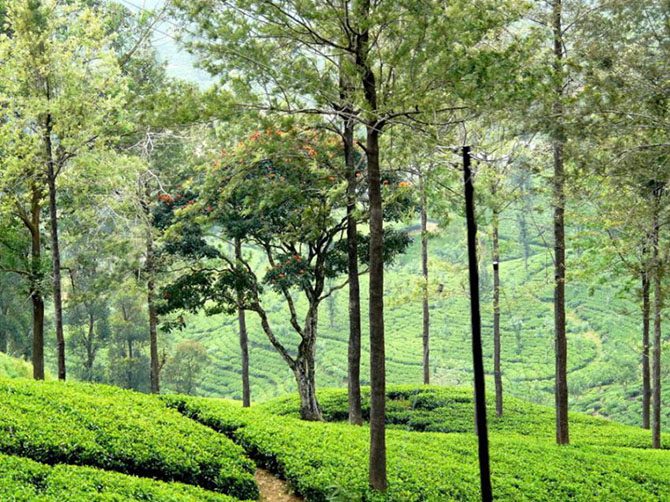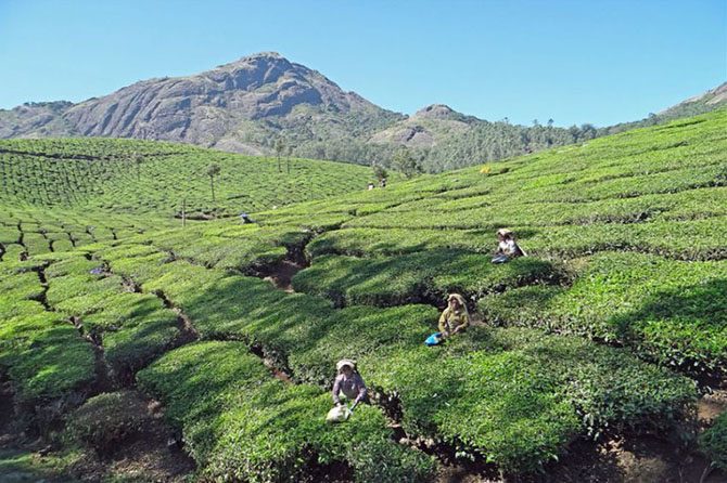 Живописный вид на горные вершины Вальпараи, очень живописные, обширные земли, покрытые чайными плантациями. Англичане впервые ввезли чай в Индию в попытке подорвать китайскую монополию на производство чая.