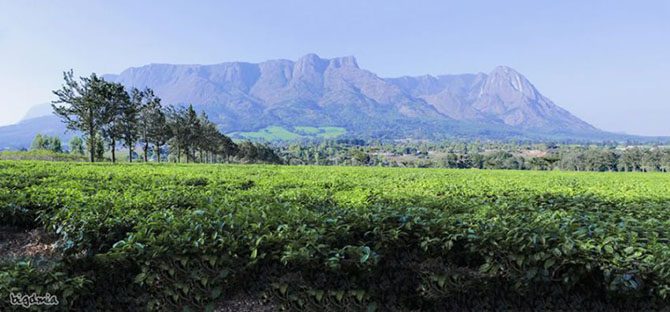 Панорама крупнейших чайных плантаций в Камеруне, нагорье возле Куала-Лумпур.