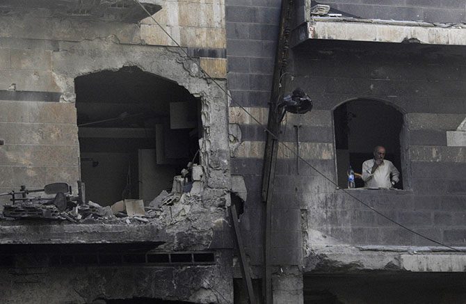 Готовые декорации для высокобюджетного фильма-катастрофы. Возможно ли это когда-нибудь восстановить? Хомс, 10 мая 2014.