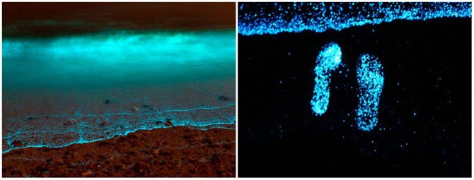 Есть в мире один пляж, который особенно красив ночью. Планктон выброшенный на пляж острова Ваадху окрашивает берега тысячами огней. Свечение объясняется биолюминесценцией — химическими процессами в организме животных, при которых освобождающаяся энергия выделяется в форме света. Голубые светящиеся волны словно отражают звезды в небе над Мальдивами!