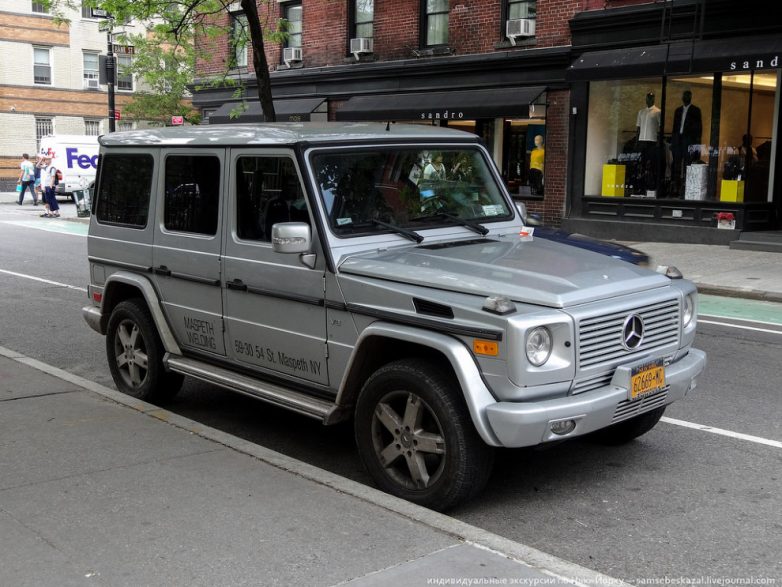 32. На многих улицах нижнего и среднего Манхеттена в течении дня парковка разрешена только для служебных автомобилей. Причем не для всех подряд, а только для тех, которые используются для доставки и обслуживания. Чтобы выполнить условия, надо зарегистрировать машину на компанию, получить номера commercial, нанести название фирмы и ее адрес на борта автомобиля, а так же снять задний ряд сидений, если используется легковой авто. Обычно на таких улицах стоят грузовики, микроавтобусы и прочий развозной транспорт, но встречаются и такие экземпляры: