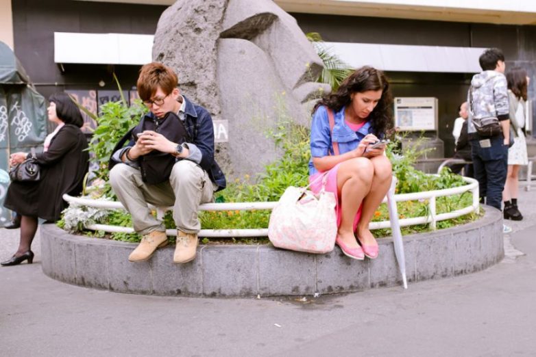 Японцы, а особенно, молодежь, совершенно не расстаётся с мобильными телефонами. Вот могут на платформе в ожидании поезда стоять 15 человек, 13 из них будут тыкать в свои мобильные. Не вру, считала.