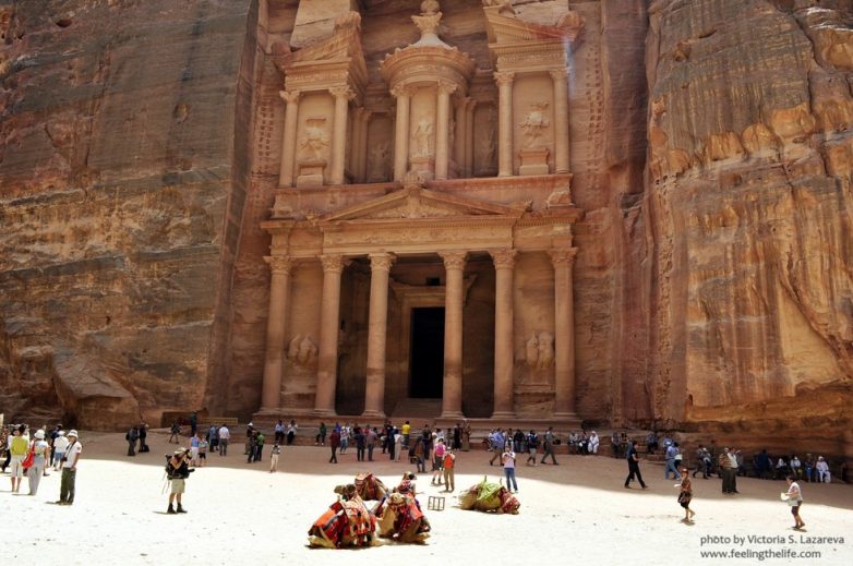 Одной из главных достопримечательностей Петры является сокровищница с фасадом, высеченным в скале. Это одно из лучше всего сохранившихся сооружений, где раньше держали золото и драгоценные камни. Чтобы попасть туда, нужно пройти около километра по каньону Сик, но туристов это не останавливает – ежегодно сюда приезжают около полумиллиона человек.