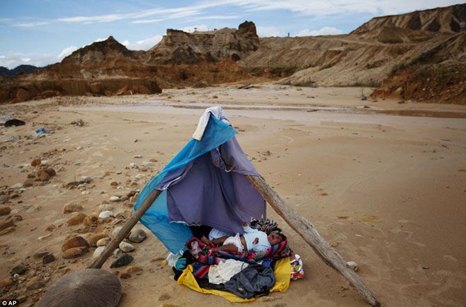 Двухмесячный Снайдер Маседо просыпается в палатке, расположенной недалеко от места, где его родители добывают золото.