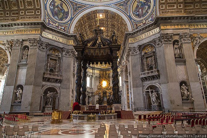 Главный Алтарь Собора. Со 2 века считается, что именно на этом месте находится могила Св.Петра, принявшего в 66 г. мученическую смерть в цирке Нерона: