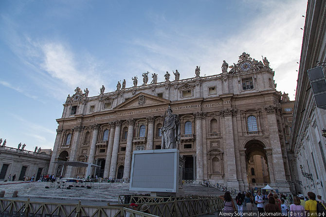 Главная площадь Ватикана перед Собором Святого Петра. Здесь всегда очень много народа. Проходят выступления и торжества. Мы были вечером, когда относительно безлюдно:
