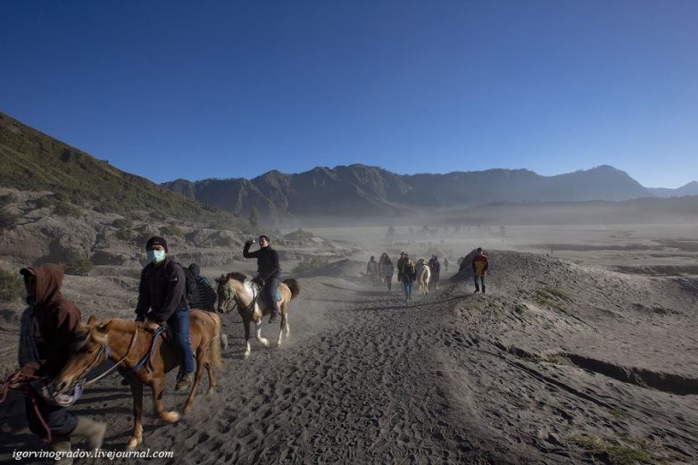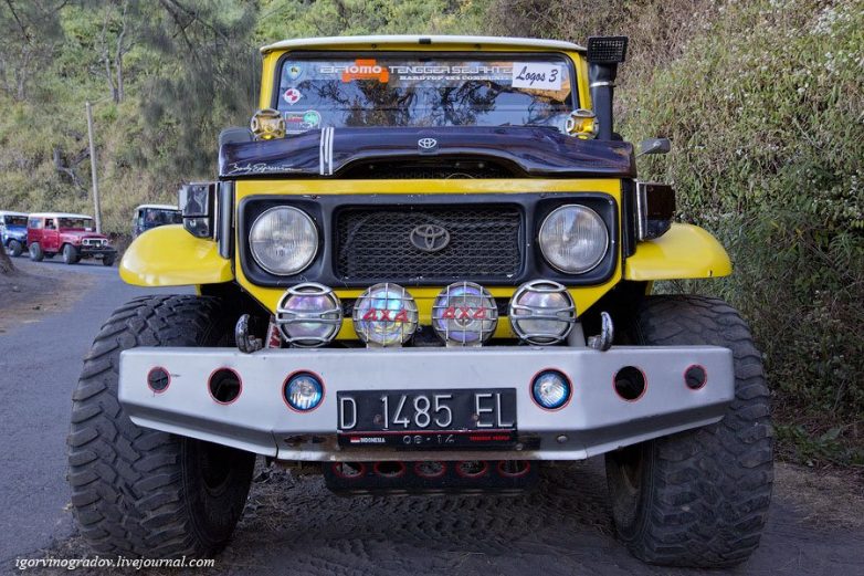 Бромо можно посетить пешком, а можно взять организованную джип-экскурсию, с заездом на гору Пенанджакан, чтобы встретить рассвет с видом на вулкан и потом уже подъехать к подножию Бромо.