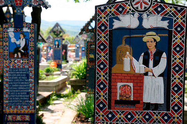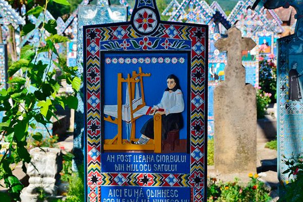 Каждая могила, которая находится здесь, имеет надгробие из дерева в виде русского теремка. На нем нет фотографии, ее заменяет рисунок, который полностью олицетворяет всю жизнь покойника. Чаще всего — это карикатура на причины смерти человека. Она рассказывает всем о том, чего не нужно делать, чтобы продолжать свою жизнь. Именно поэтому это румынское кладбище просто все светится жизненной энергией и смехом.