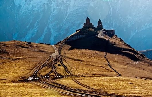 Троицкая церковь в Гергети в Грузии. Она была построена еще в XIV веке и располагается на высоте 2170 метров.