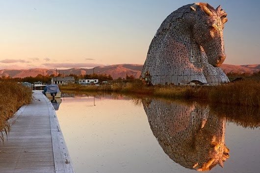 Известный шотландский скульптор Энди Скотт воздвиг над каналом Форт-энд-Клайд в городе Фолкерк гигантские 30-метровые конские головы. Это дань уважения келпи – мифическим существам, по преданию, обитающим во многих реках в озерах Шотландии и являющимся в облике пасущихся у воды коней.