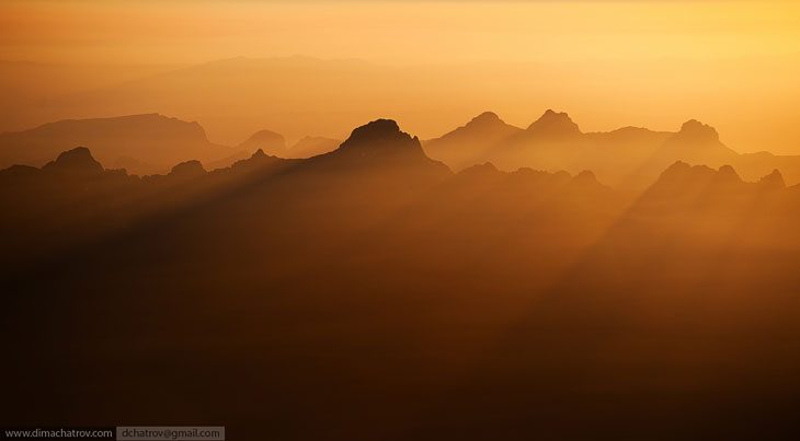 Французские Альпы. Вид на закатную гряду с ледника Моди:
