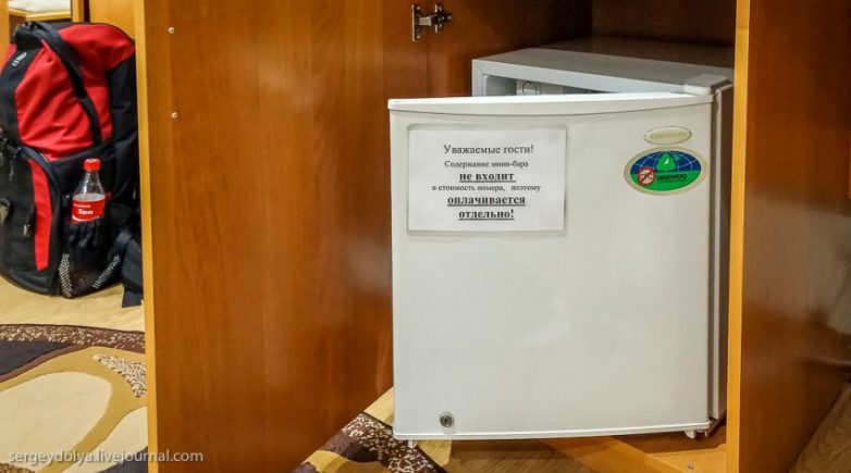 Чем дальше от Москвы, тем чаще попадаются гостиницы с пустым минибаром в номере. То есть, владельцы этих гостиниц слышали, что в номере должен быть минибар, но не понимают зачем он там нужен. Часто минибар — это полноразмерный холодильник, который даже не включен в сеть. Неужели сложно поставить туда хотя бы водичку?
