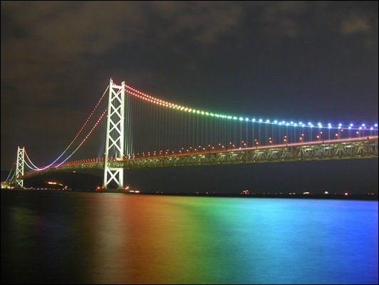 Мост Акаси в Японии, соединяющий города Кобе и Авадзи, является самым длинным подвесным мостом в мире, а по высоте опор он уступает только французскому Виадуку Мийо.