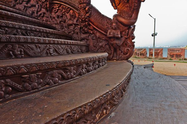 Представьте себе величественное, выполненное из дерева и сплошь украшенное резными фигурами, сооружение, расположенное у самой кромки воды. Именно так выглядит Храм Истины в в Северной Паттайе.