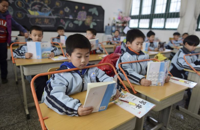 5. Школьники за партами. Такими приспособлениями в Китае борются с появлением близорукости, провинция Хубэй, 10 марта 2014.