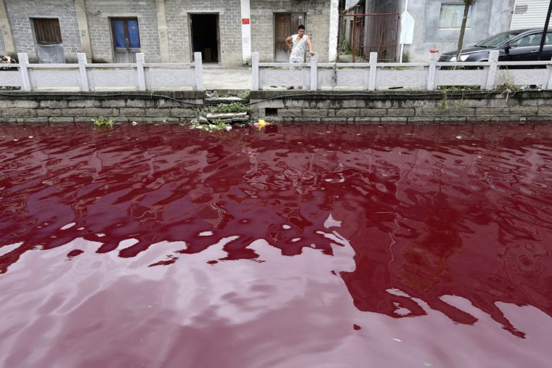 4. Загрязненная река в провинции Чжэцзян, 24 июля, 2014.