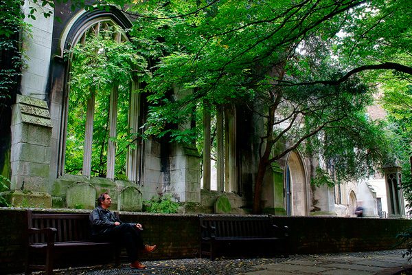 Чуть восточнее лондонского Тауэра. Небольшой островок зелени на холме, умиротворенный и тихий сад… на месте разрушенной церкви Дунстан-Ист. Он как будто парит над оживленным и шумным кварталом.