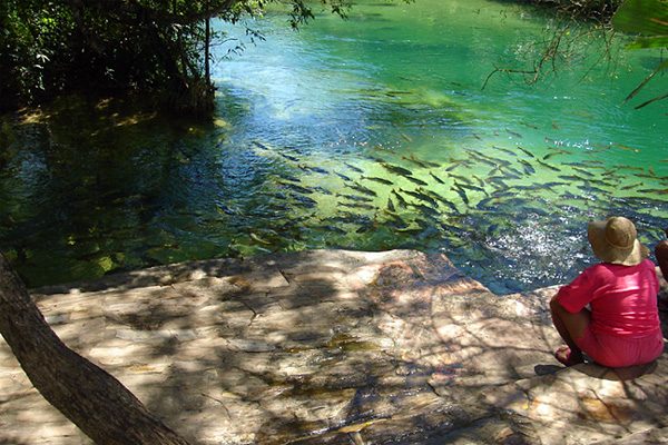 Одним из прекраснейших мест Бразилии считается Бонито. Оно находится неподалеку от города Кампо Гранде. За свои резвые и извилистые речушки, глубокие и прозрачные озера, а также шумящие и срывающиеся вниз водопады, Бонито (что, кстати, переводится, как «красивый»), местные жители называют «прекрасным королевством прозрачных вод».