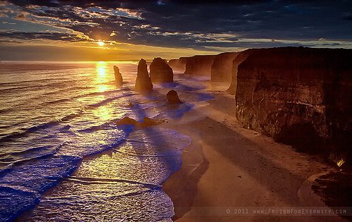 Природный памятник Двенадцать апостолов представляет собой группу стоящих рядом известняковых утесов, уютно расположившихся на побережье Национального парка Порт Кэмпбелл в объятьях бушующих волн. Они лежат на пути Великой океанской дороги, простирающейся на 243 км вдоль живописного побережья Индийского океана. По оценкам геологов возраст этих скальных образований может составлять от 10 до 20 миллионов лет. На сегодняшний день в группе осталось только 8 скал, высота некоторых из них достигает 45 метров. Двенадцать апостолов – одна из самых популярных и посещаемых достопримечательностей штата Виктория и всей Австралии, которую ежегодно посещают около двух миллионов туристов.
