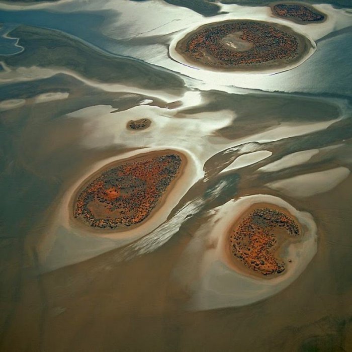 Это уникальное озеро, расположенное в юго-западной части Северной Территории Австралии, большую часть времени полностью покрыто слоем затвердевшей соли. И лишь на время дождей заполняется водой.