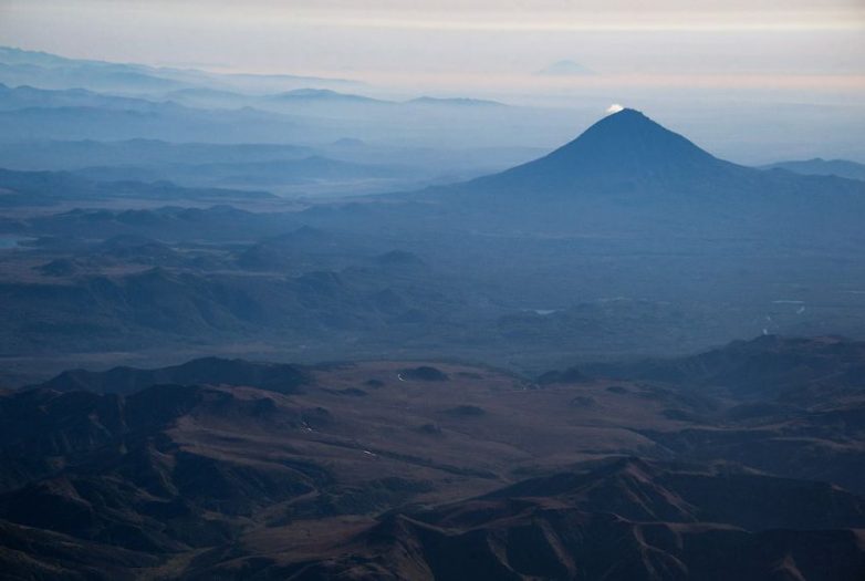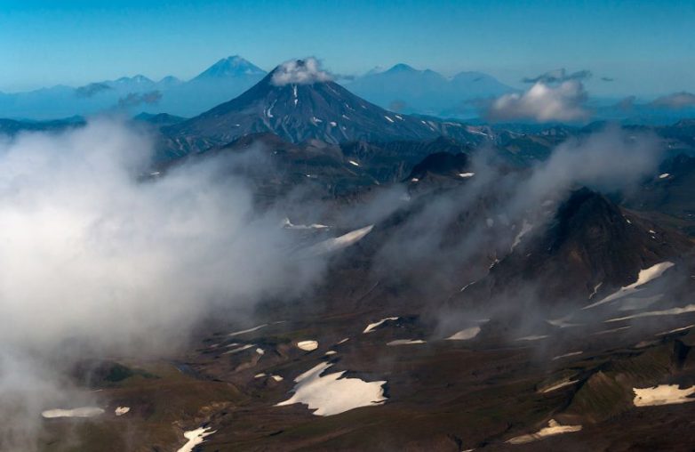 Вулкан Вилючинский показался среди облаков.