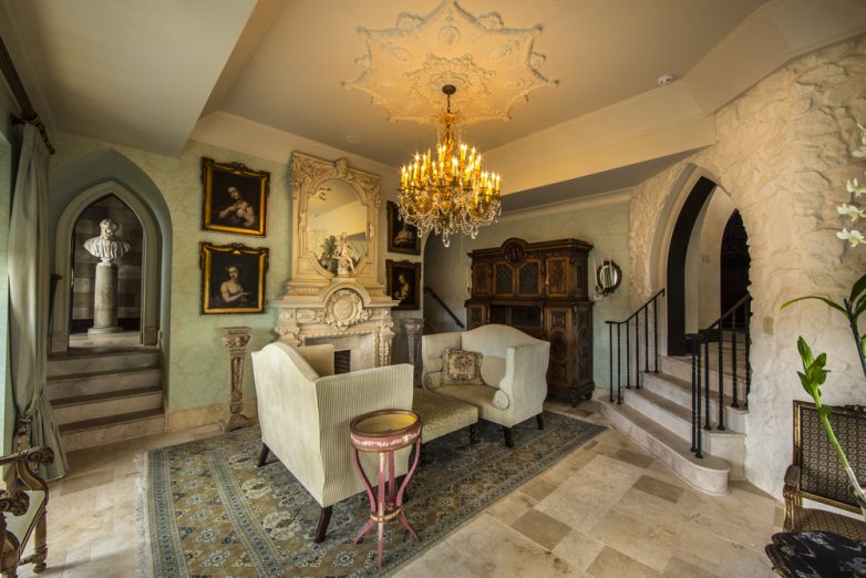 В особняке, более 30 номеров, в том числе двухэтажный зал, солярий, библиотека, и крыло для приглашенных на свадьбу гостей, чтобы жить роскошно, оставляя детали для внимательного персонала.