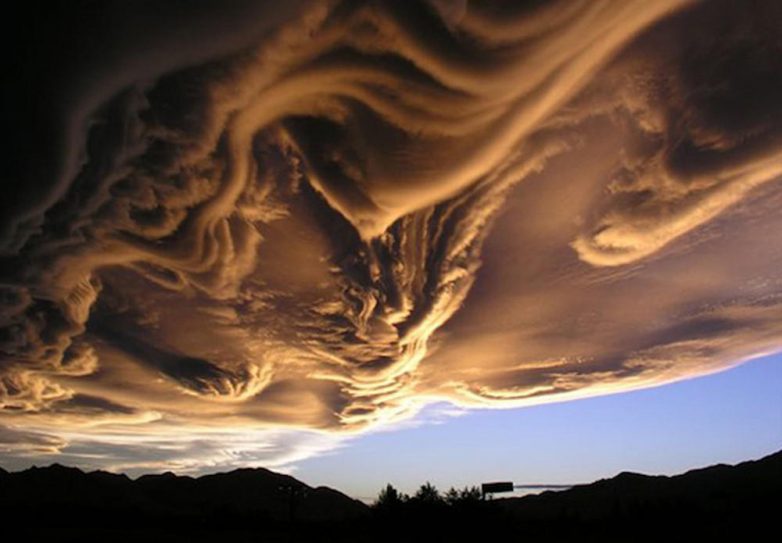 Мощь природы безгранична, и она не всегда показывает её неся разрушения и гибель людей, иногда достаточно просто поднять голову. Undulatus asperatus, известные также как асператус, это редкий тип облаков устрашающего вида, предложенные в качестве отдельного вида в классификации облаков в 2009 году.