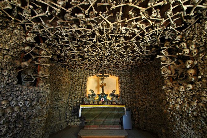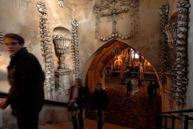Церковь Святого Иакова в Брно, Чехия. Своим указом правитель запретил погребение в черте города, поэтому кладбища, которые находились в городе, в том числе и вокруг церкви, были закрыты и перенесены в другие места. Большое количество останков перемещали в подземные хранилища, такие, как на территории церкви. Именно после этого указа здесь возникло место массового погребения стольких людей.