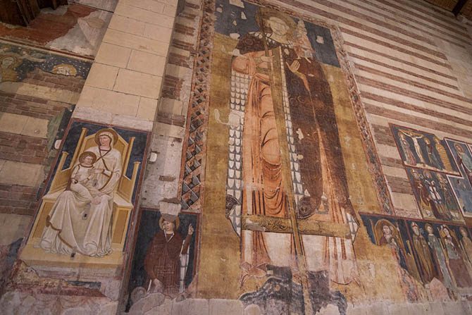 Справа от входа — амвон XIV в. из белого и красного мрамора, окруженный фресками местного художника Мартина ди Верона.