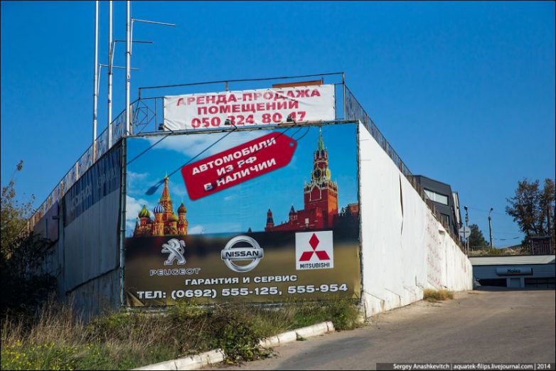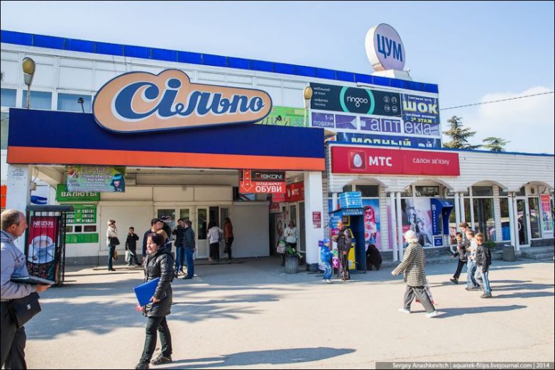 Сергей: Да, так и есть. Причем это касается не только магазинов и заведений, который закрылись после мартовских событий, но и ныне действующих. Например, салон связи МТС, который на фото, раньше продавал украинские сим-карты, теперь продает российские, хотя МТС-Россия официально и не присутствует на крымском рынке.