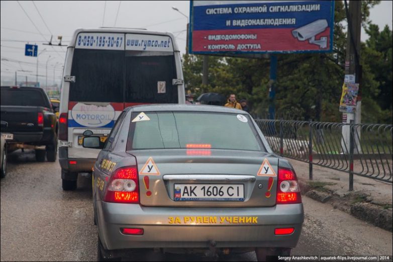 Сергей: Номеров у нас сейчас каких только нет. Старые украинские серии — СН и АК. Многие все еще ездят с этими номерами по тем или иным причинам. Многие в том числе и из-за того, что им нужно периодически ездить на территорию Украины. Многие, кто еще не сменил номера, заклеили украинский флаг на планках российским. Примерно с середины мая у нас начали перерегистрацию автотранспорта на российскую вместе с заменой прав. Замена бесплатная. Сначала нам выдавали московскую серию 777-регион с буквенными кодами х-000-Ех, то есть двухбуквенная серия начиналась с буквы Е. Примерно с середины лета 777 регион выдавать перестали. Теперь Крым имеет 82 код региона, а Севастополь — 92-й.