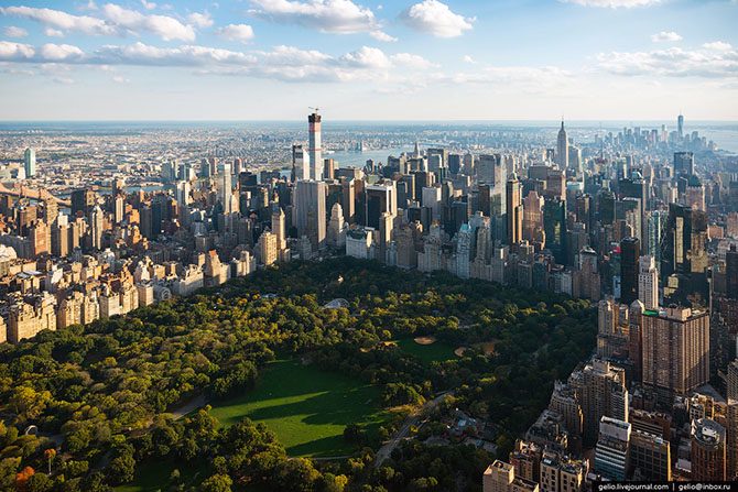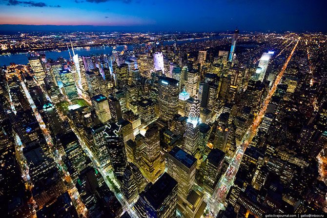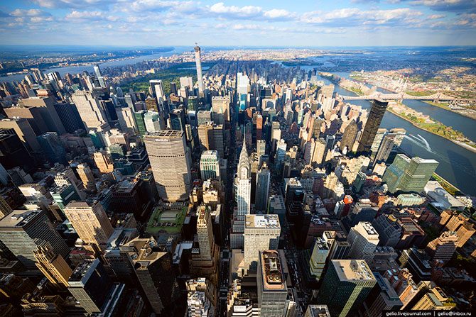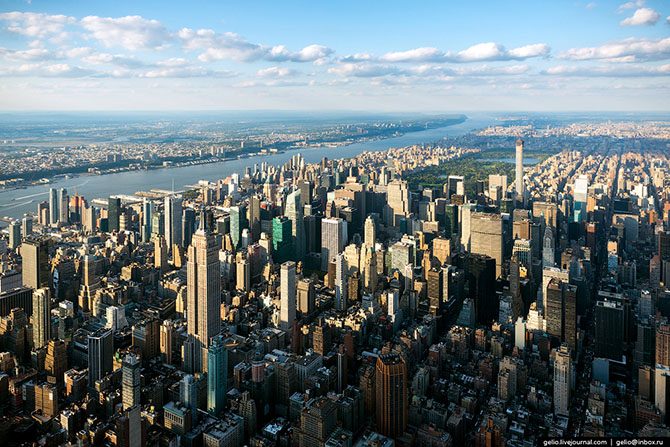 В городе более 500 зданий высотой более 100 метров. По этому показателю Нью-Йорк уступает только Гонконгу. Большинству людей приходится знакомиться с Нью-Йорком, задирая голову вверх. Но чтобы полностью оценить красоту этого города, на него нужно смотреть не снизу, а сверху.