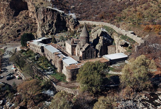Гегардский монастырь, XII—XIII вв. — с. Гегард. Гега́рд (дословно — «копьё») — монастырский комплекс, уникальное архитектурное сооружение в Котайкской области, Армения. Расположен в ущелье горной реки Гохт (правая составляющая реки Азат), примерно в 40 км к юго-востоку от Еревана. Внесён ЮНЕСКО в список объектов Всемирного культурного наследия.