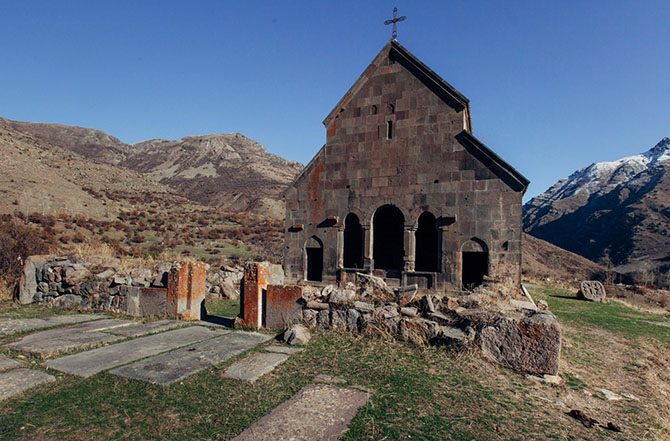 Монастырь Танаат, V в. — с. Аравус. Находится в Вайоц-Дзорском марзе, на живописном горном массиве. Путь, ведущий к нему, изобилует многочисленными поворотами с резкими перепадами высот. Монастырский комплекс состоит из двух церквей, кладбища и руин древнего Гладзорского университета. Он сложен из густо-синего базальта, и поэтому его часто называют «Черный монастырь».