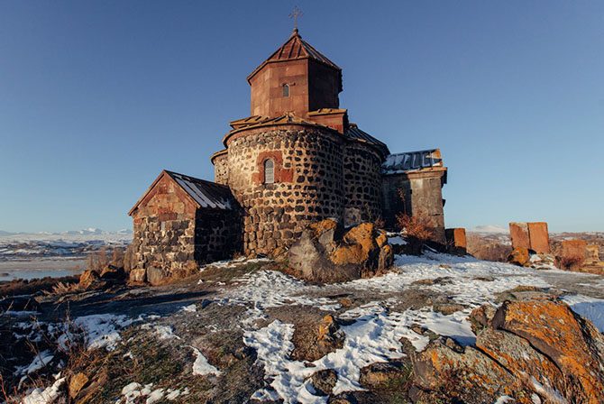 Монастырь Севанаванк. XVIII век. Находится на северо-западном побережье озера Севан, провинция Гехаркуник, Армения. Комплекс строений расположен на одноимённом полуострове Севан, который ранее являлся небольшим островом.