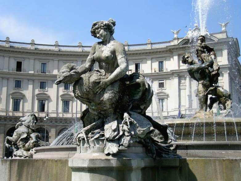 Фонтан Нимф украшает площадь Республики. Он был создан в 1870 году, а свою нынешнюю форму приобрел после произведенной в 1901 году реконструкции, когда скульптор Марио Рутелли его украсил четырьмя бронзовыми нимфами.