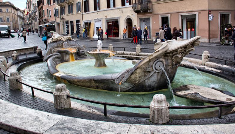 На одной из известных римских площадей – площади Испании, в 1629 году появился фонтан Баркачча, созданный в память о произошедшем в Риме наводнении. Архитектор Пьетро Бернини умело использовал незначительную скорость струящейся воды, представив фонтан в виде утопающего судна. Фонтан Лодка изготовлен в стиле барокко, благодаря которому зодчие превратили источники воды в подлинные шедевры искусства.