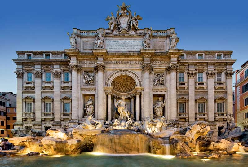 Самый прекрасный фонтан Рима под названием Треви является уникальным сочетанием 2-х стилей – Барокко и Неоклассицизма.