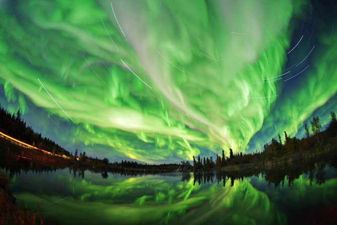 Это знаменитый природный феномен провинции Альберта, которое получается, когда заряженные частицы, испускаемые солнцем, сталкиваются с частицами атмосферы Земли.